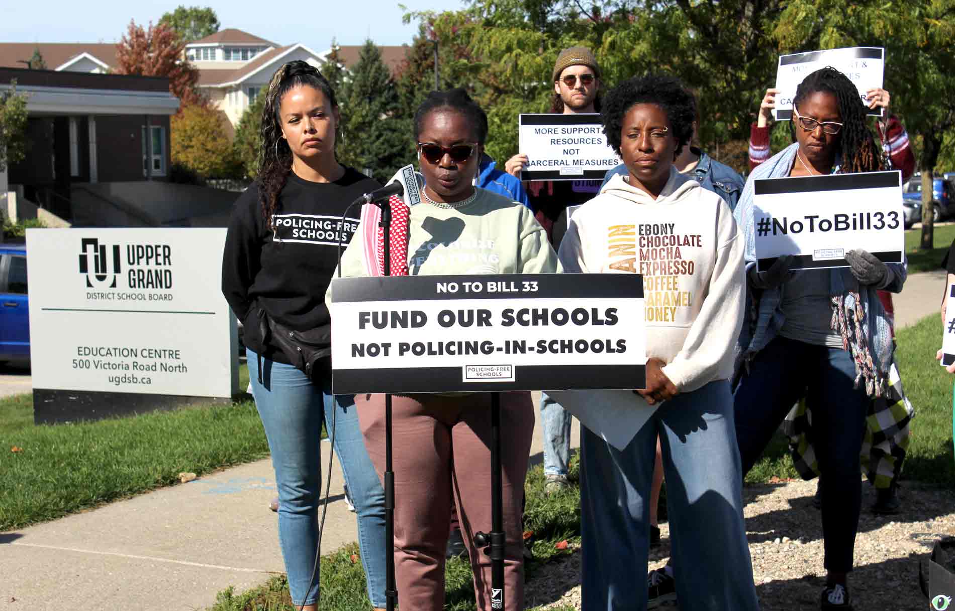 The gathering, organized by the UGDSB Black Parent Council and Policing-Free Schools, highlighted what organizers say are problems with Bill 33.
