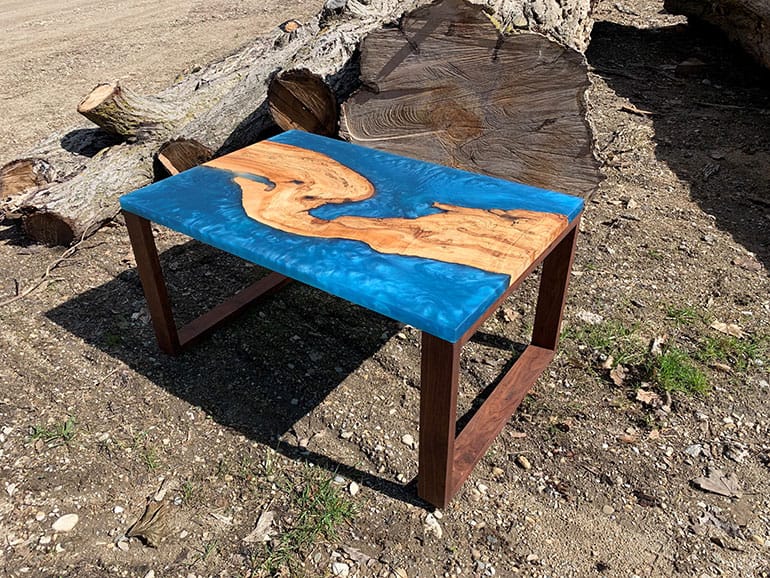 Almost Anything Wood is now a certified dealer of Ecopoxy, a colourful way to embellish live edge pieces with flair. Add resin colours to fill in the natural voids and grooves of the wood and transform them to create something spectacular. With coloured kits, anyone can embellish their live edge pieces with ease. But of course, customized pieces are available too. See it for yourself at the Almost Anything Wood showroom.