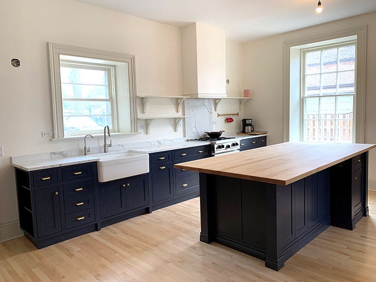 Find your inspiration in the Almost Anything Wood showroom, complete with two model kitchens and a full selection of cabinet styles, finishes, doors, handles and other accents. With trusted suppliers and three decades of expertise, you can be sure the product quality of every material here meets Dave’s high standards. Fully customizable, your designs will function to your specifications, from soft close track fixtures and hinges to dovetailed drawers and stylish décor features.