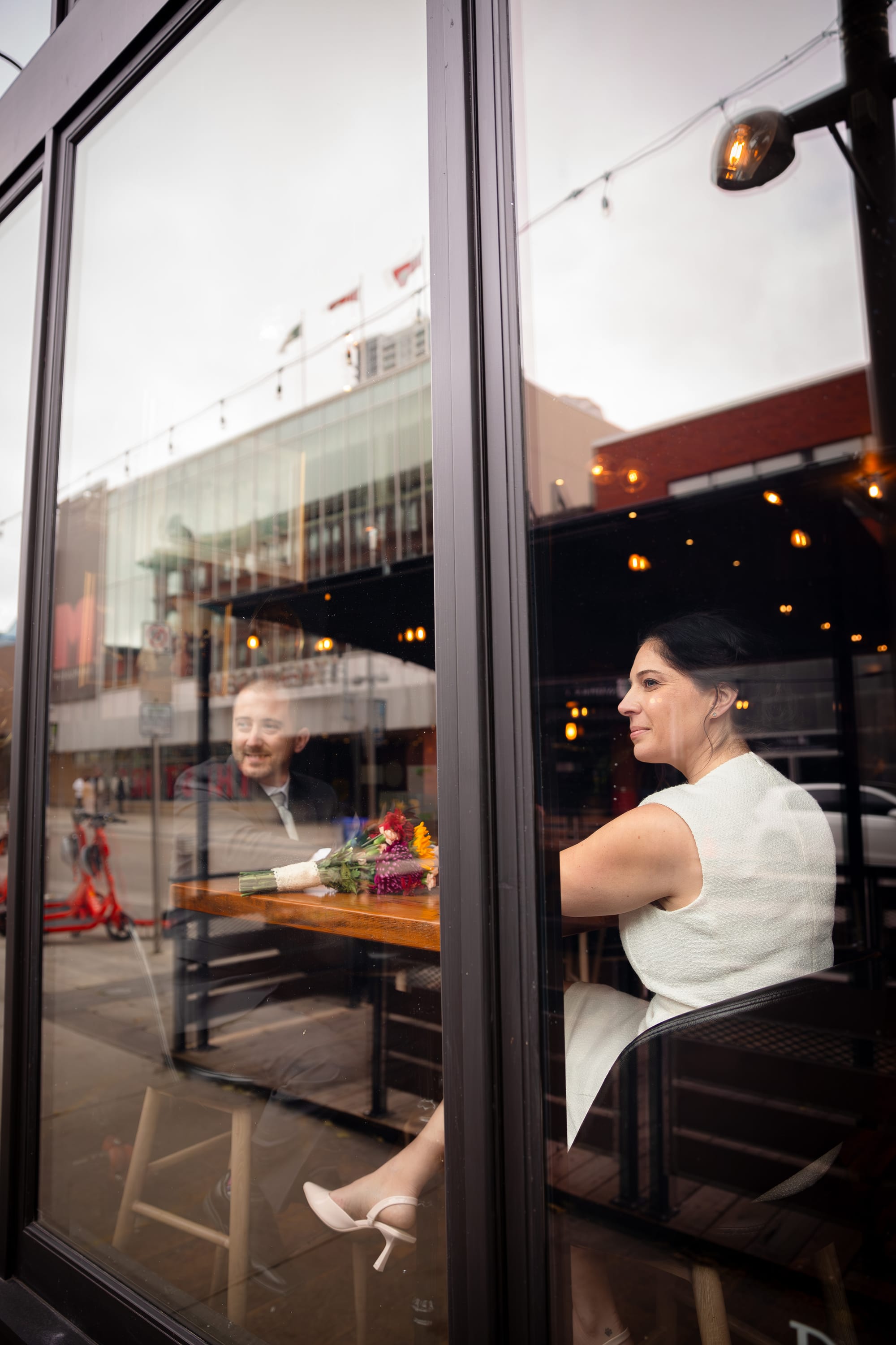 On October 21, 2023, Shoemaker photographed Grant and Brandi, who were married at the DTK chapel in the heart of Kitchener. She was also at their reception, a month later at Abe Erb brewery.