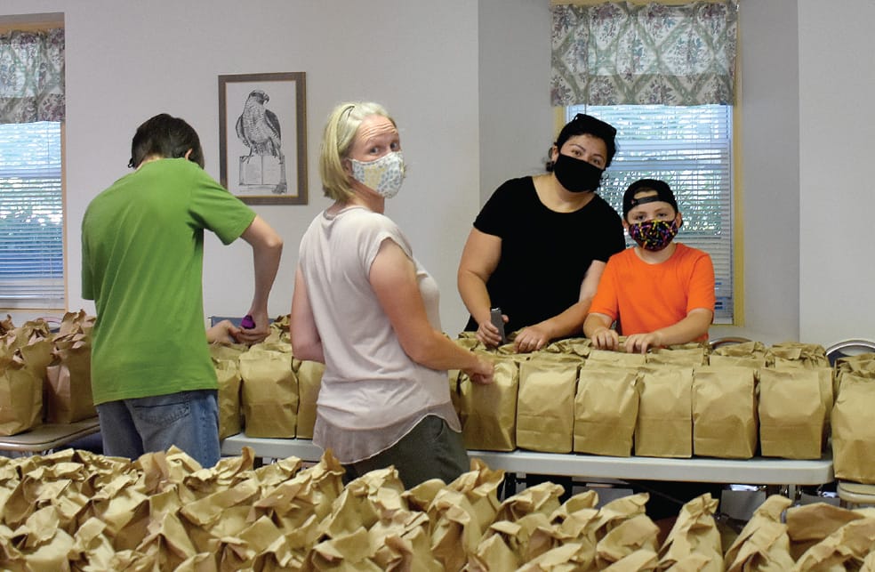 prepare for the annual Canada Day chicken barbecue at St. John’s Community Church on July 1. BELOW: Prepackaged - This year, the event was run as a drive-through with prepackaged dinners. Photos by Curtis Gordon