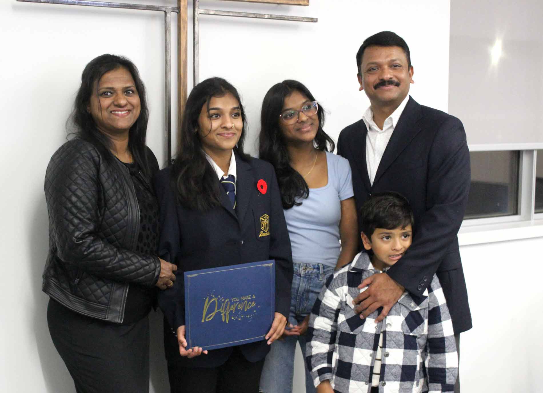 Trustee Joe Tersigni presented Jinu with the VIP award and read out a glowing summary of Jinu’s “hard work, dedication and outstanding achievements in both her academic pursuits and contributions to the Lourdes school community.”
