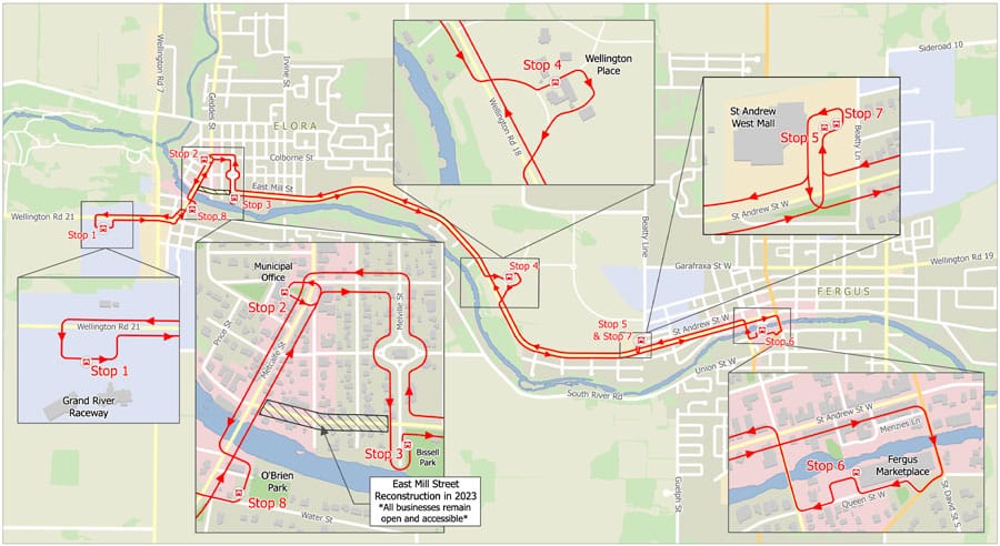 - new stop at 1 MacDonald Square, Elora;