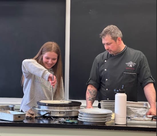 PALMERSTON – On April 15, Frederic Chartier, owner and chef at Beyond the Gate restaurant in Shelburne, visited Norwell District Secondary School students to show them how to prepare traditional French crêpes.