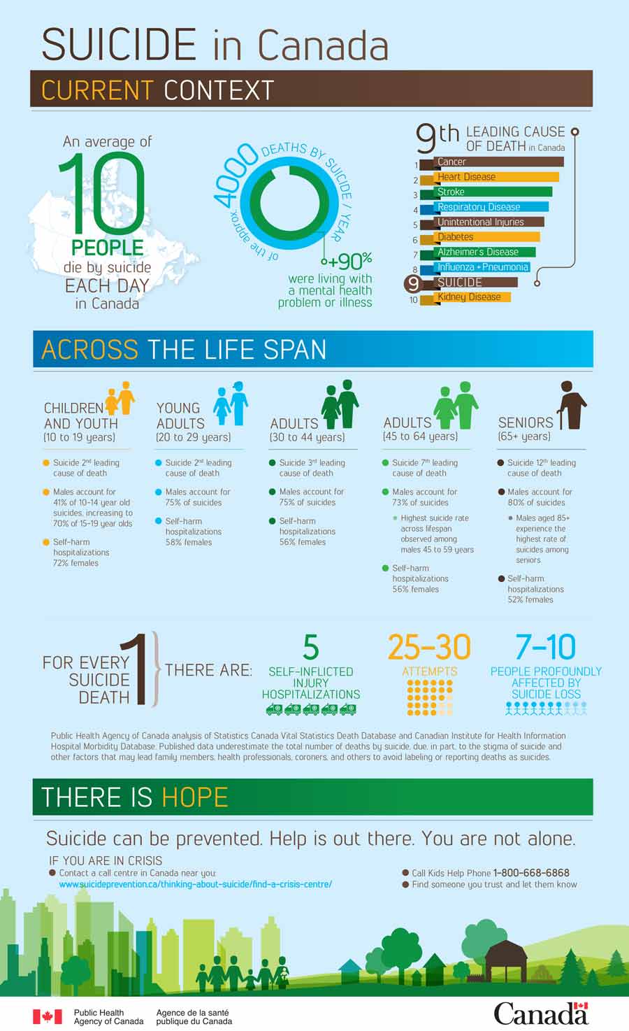 In Canada, suicide is the ninth leading cause of death for the entire population.