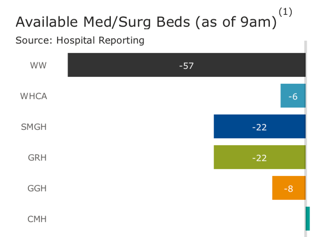 The Jan. 21 Waterloo Wellington hospital report also notes there are -57 medical/surgical beds available to support patients.