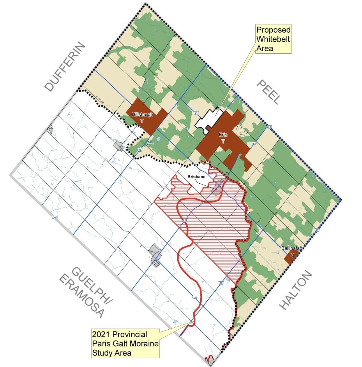 ERIN – The provincial government wants to add roughly 7,000 acres of land belonging to the Paris Galt Moraine and located in Erin to the Greenbelt while it subtracts around 7,400 acres of protected land primarily in the GTA for housing development.