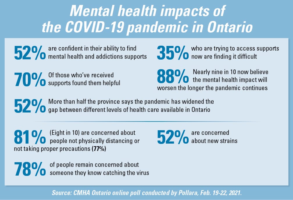 Almost 75 per cent of the population is facing increased mental health and substance use challenges as a result of the COVID-19 pandemic, according to the CHMA.