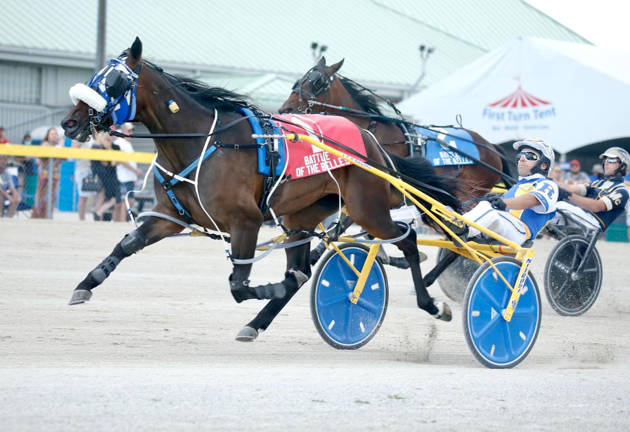 Ontario sired two-year-old fillies showcased their tremendous talent in the 2021 edition of the Battle Of The Belles. Big Bettor Hanover took the early lead from post position two with Warrawee Xpat and Cheryls Shadow also leaving for position into the backstretch.