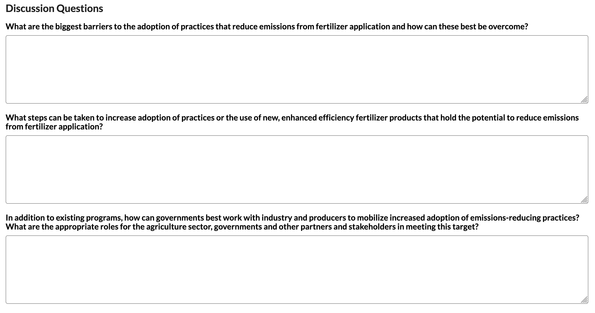 Fertilizers are said, in the discussion paper, to be “responsible for a growing share of overall agricultural emissions.”