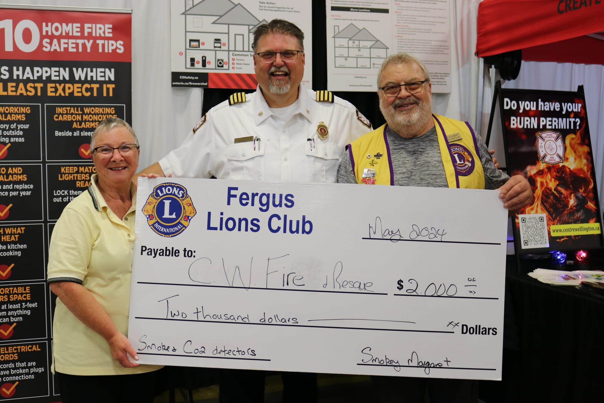 The Lions presented a $2,000 cheque to deputy fire chief Jason Benn for 50 smoke and carbon monoxide detectors.