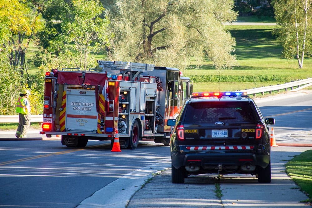 Wellington OPP and the fire service closed off a portion of Main Street South between Miller Street/Parkside Drive and North Water Streets on Sunday.