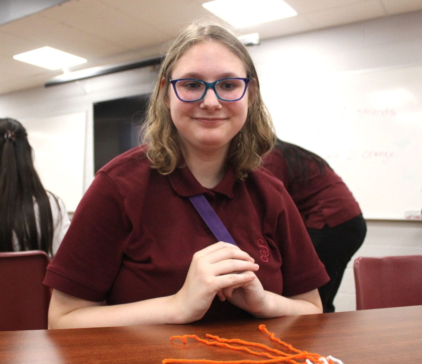 Hamilton taught the students how to make “mini” sashes that could be worn as bracelets or used as bookmarks.