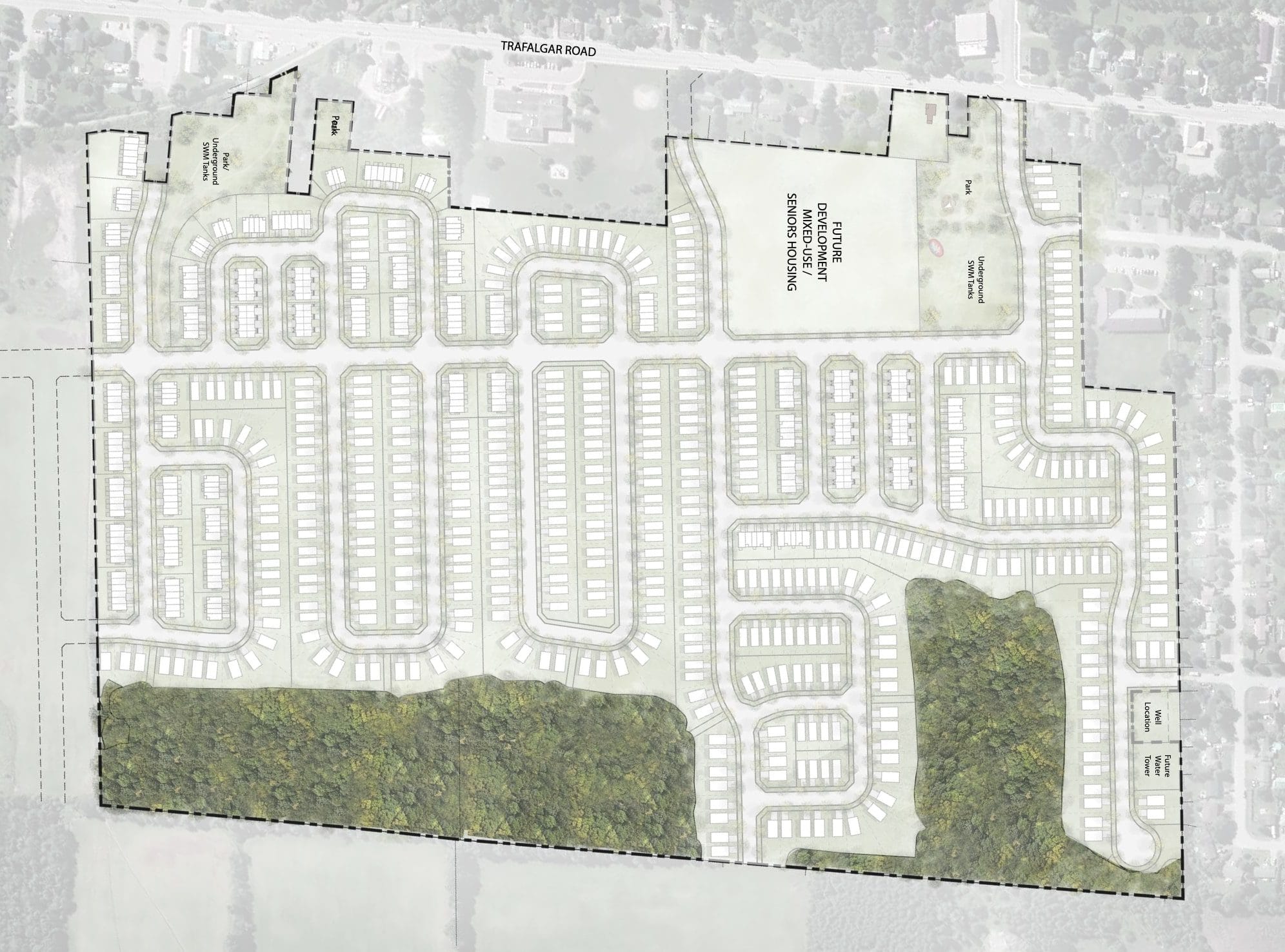 Development, to occur in phases, is contingent on servicing being ready, including segments three and four of the new wastewater treatment plant.