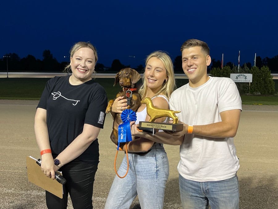 ELORA – Gus, the four-year-old miniature dachshund, took home the grand prize at Grand River Raceway’s 2023 Wiener Dog Championship on July 14.
