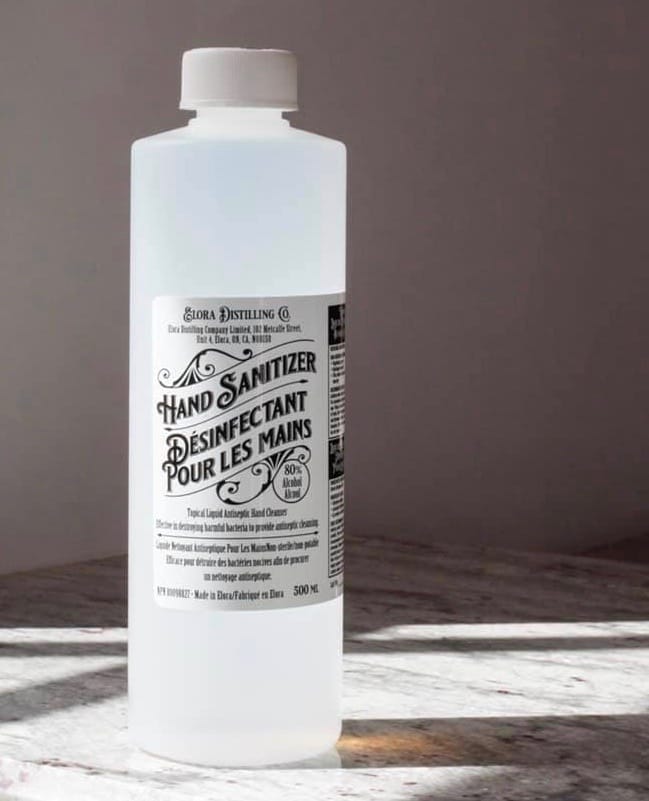 The Elora Distilling Company is selling hand sanitizer Wednesdays to Fridays from 11am to 5pm in-person only, observing social distancing protocols.