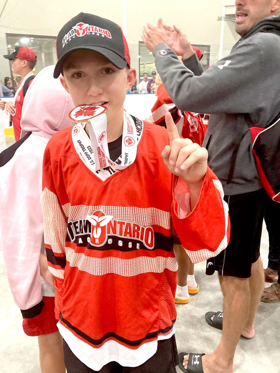 Garin’s skill improved year by year, and this summer, at 12 years old, he represented his province by playing for Team Ontario in the U13 National Lacrosse Championship.