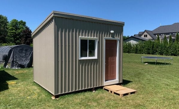 The units are designed with steel siding, fire-retardant materials, spray foam insulation between walls, enough height to stand in, a window, and locking metal doors.