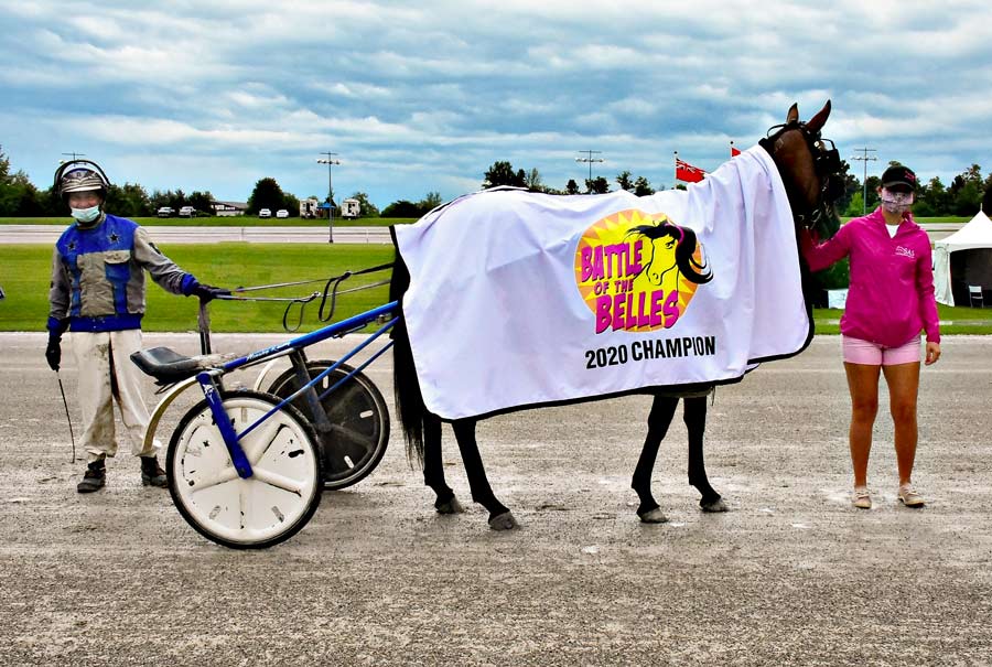 Scarlett Hanover and driver Ed Hensley left from the second tier and carved out a solid pocket trip to take the $128,149 Battle Of The Belles final in a new stakes record of 1:54.3. The mile also set a Canadian season record for rookie pacing fillies over a half-mile track and just missed the divisional track record by one-fifth of a second.