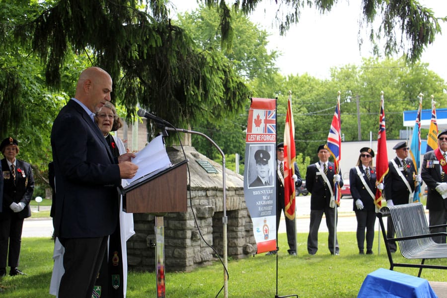 FERGUS – A bronze plaque mounted on Canadian granite rests in Fergus’ Norman Craig Square in memory of Master Corporal Brent W. Lillie.