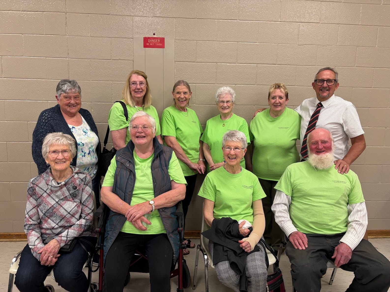 The Clifford and District Horticultural Society volunteers put on their green shirts for the last time at the Town of Minto Volunteer recognition dinner. Mayor Dave Turton, top right, thanked them for their years of service.