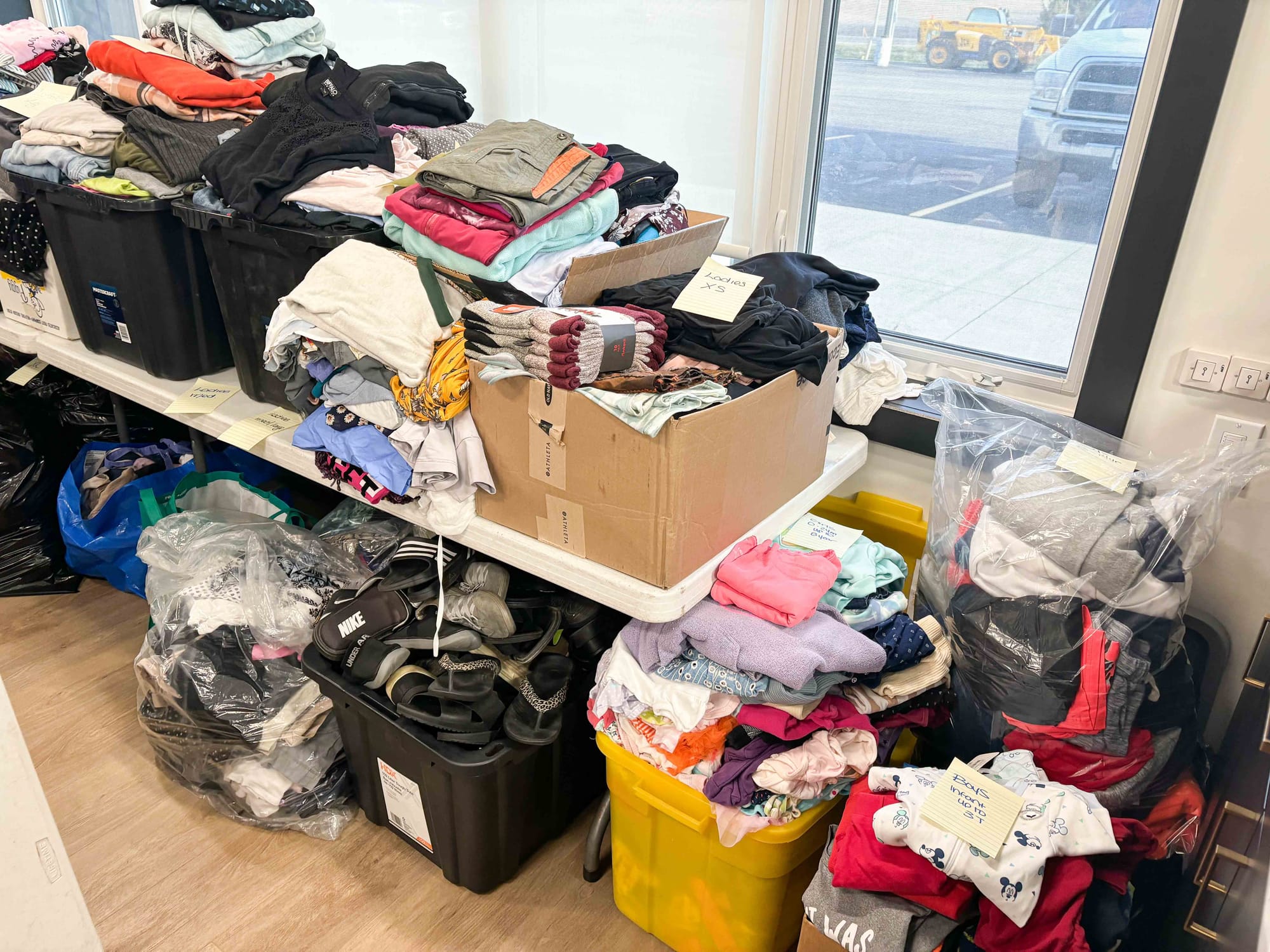 Donations of mostly clothing have been dropped off at Moonfleet’s Harriston office since the men approached human resources staffer Krista Blenkhorn for help.