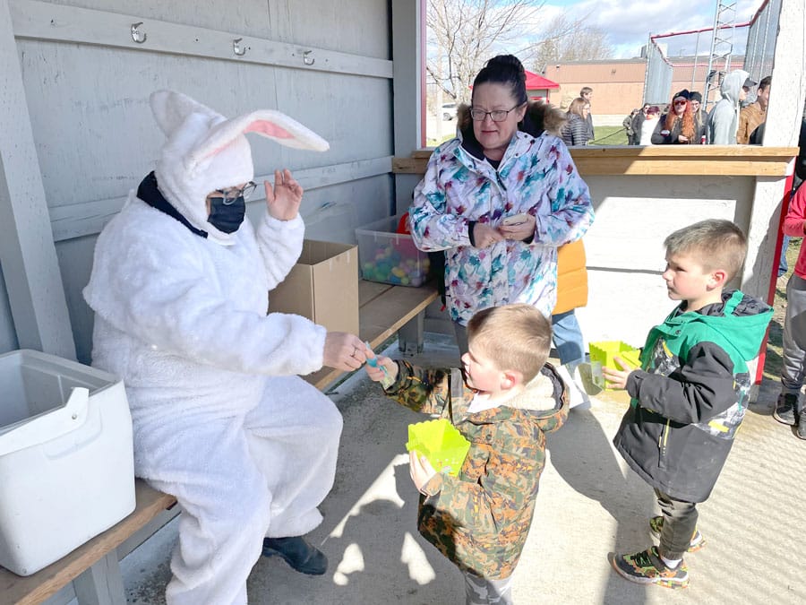 Egg hunters – After a two-year pandemic pause, the Town of Minto Optimist Club resumed hosting its annual Easter egg hunts in the town’s three urban centres on March 16. Lila, left, and Alex Myer were among those receiving treats from the Easter Bunny at the Harriston event. Egg hunts were also held in Clifford and Palmerston on Saturday morning.