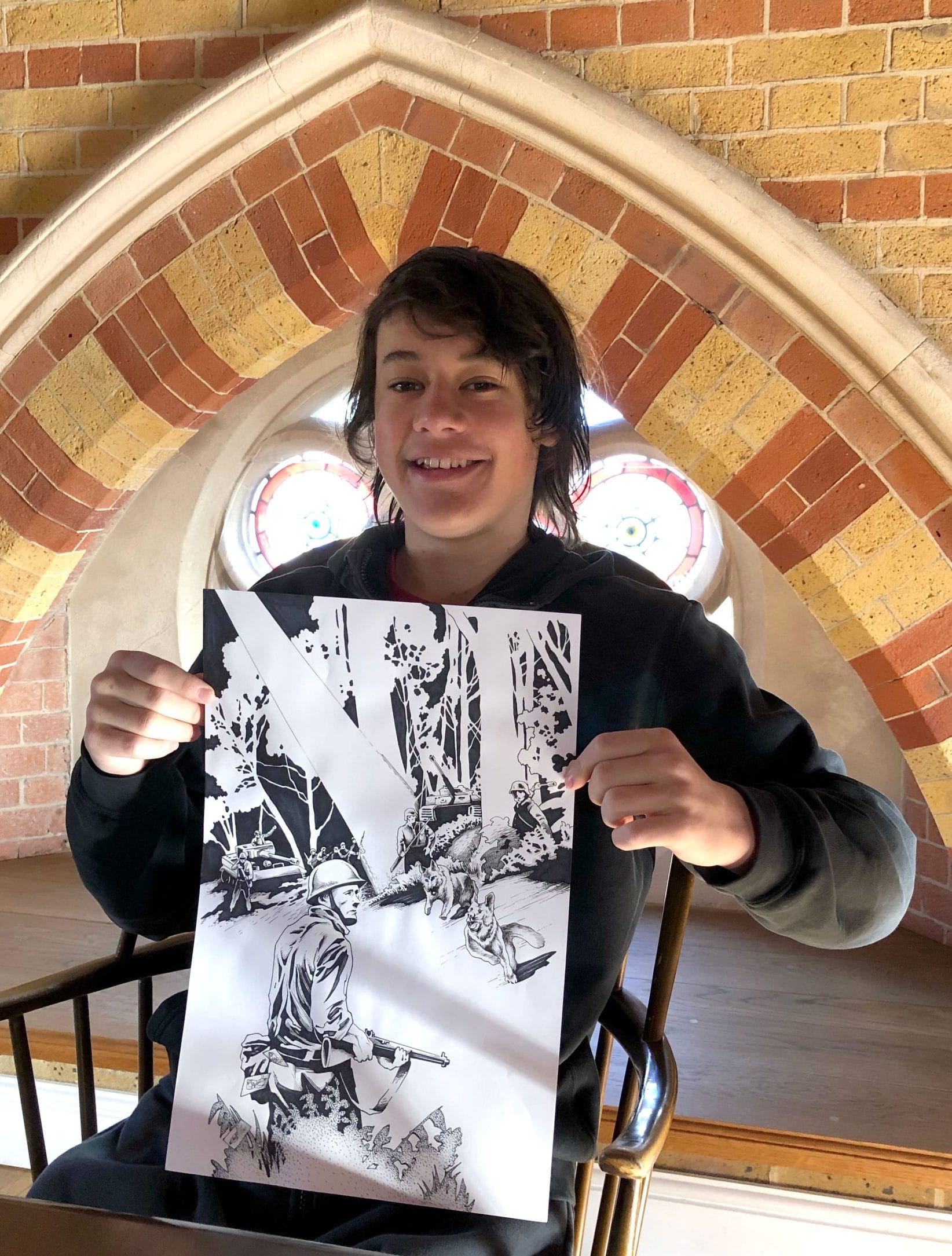 Published by UK comics company Markosia, Johnny Recruit, is written by 14-year-old Theo Behe, the UK comics’ youngest published writer, and illustrated by Mount Forest artist Thomas Muzzell.