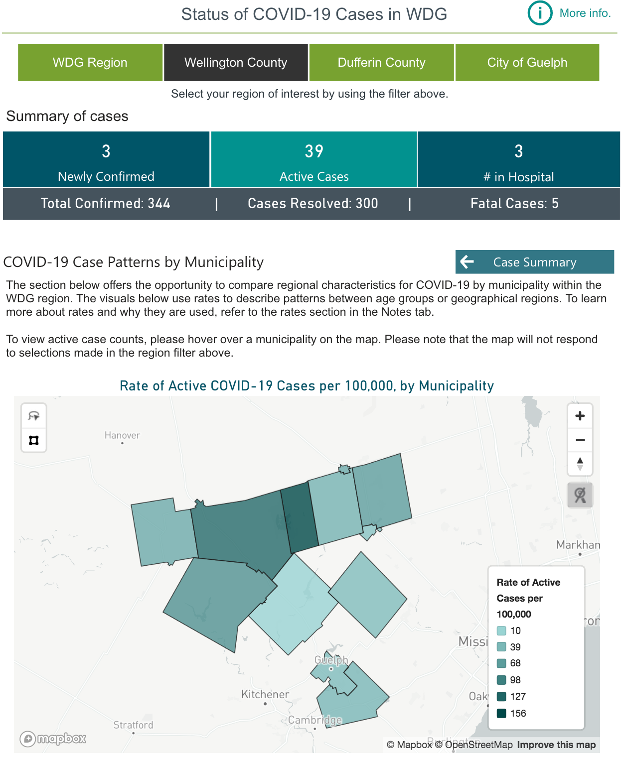 WDGPH spokesperson Danny Williamson said adding case data for each municipality on the online dashboard "is an important tool to help the public understand the current COVID picture in our region."