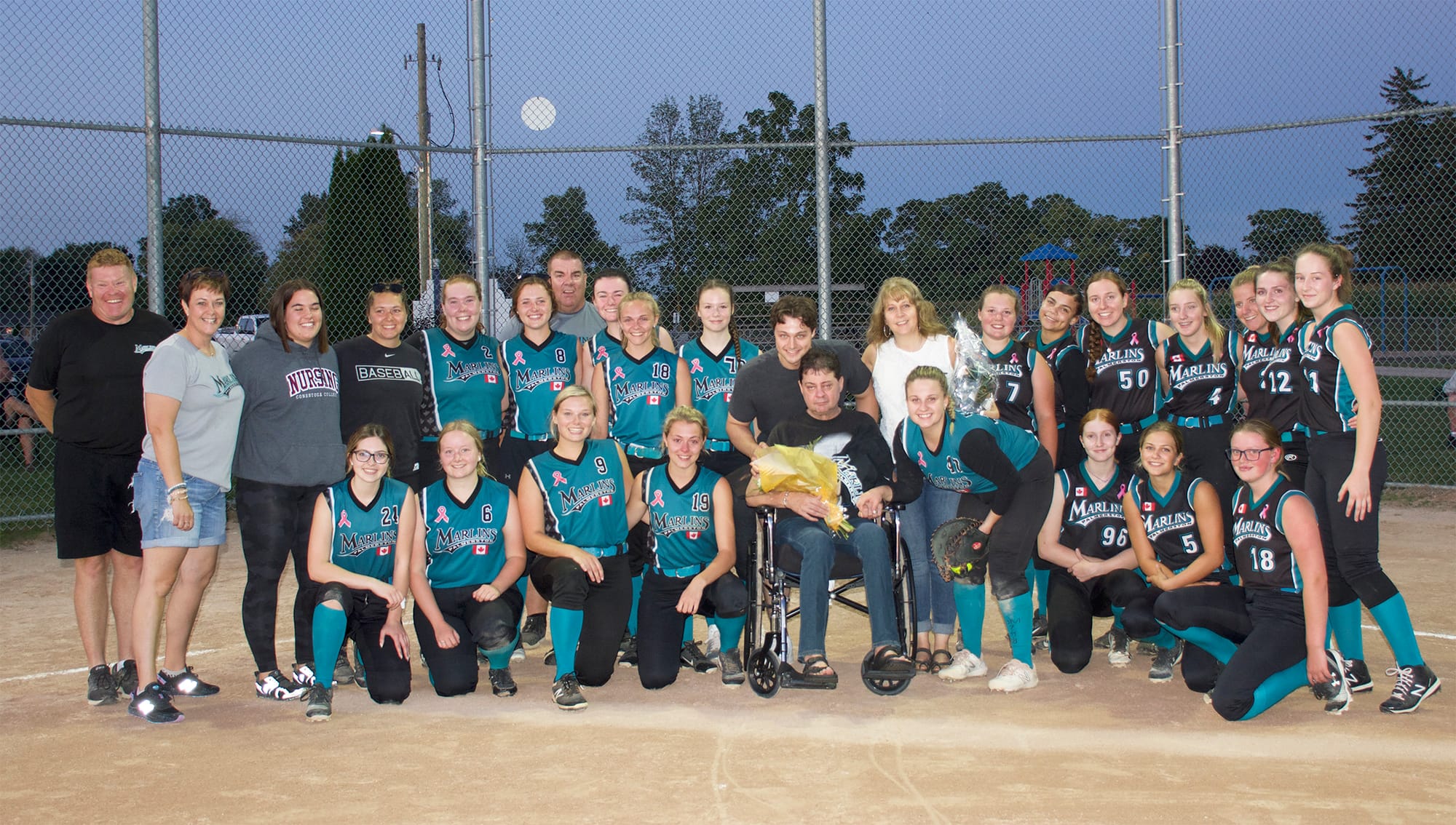 A game between two of the Palmerston Marlins U19 softball teams was dedicated to Dean Fischer, a longtime parent and volunteer with the program who has been battling brain cancer for several months.