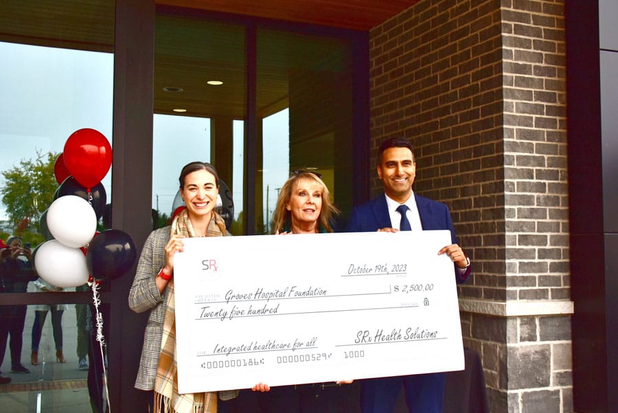 CENTRE WELLINGTON – While it has been operating since 2021, Pharmasave Trailside Pharmacy and Compounding finally celebrated its grand opening with a ribbon cutting ceremony on Oct. 19. Pharmacy owner Bronwyn Tolmie partnered with SRX Health Solutions at the Trailside location, to offer more than a typical pharmacy, including infusions, injections, and other specialized therapies. Trailside Apothecary and SRX also presented a $2,500 cheque to the Groves Hospital Foundation to thank the community for its support.