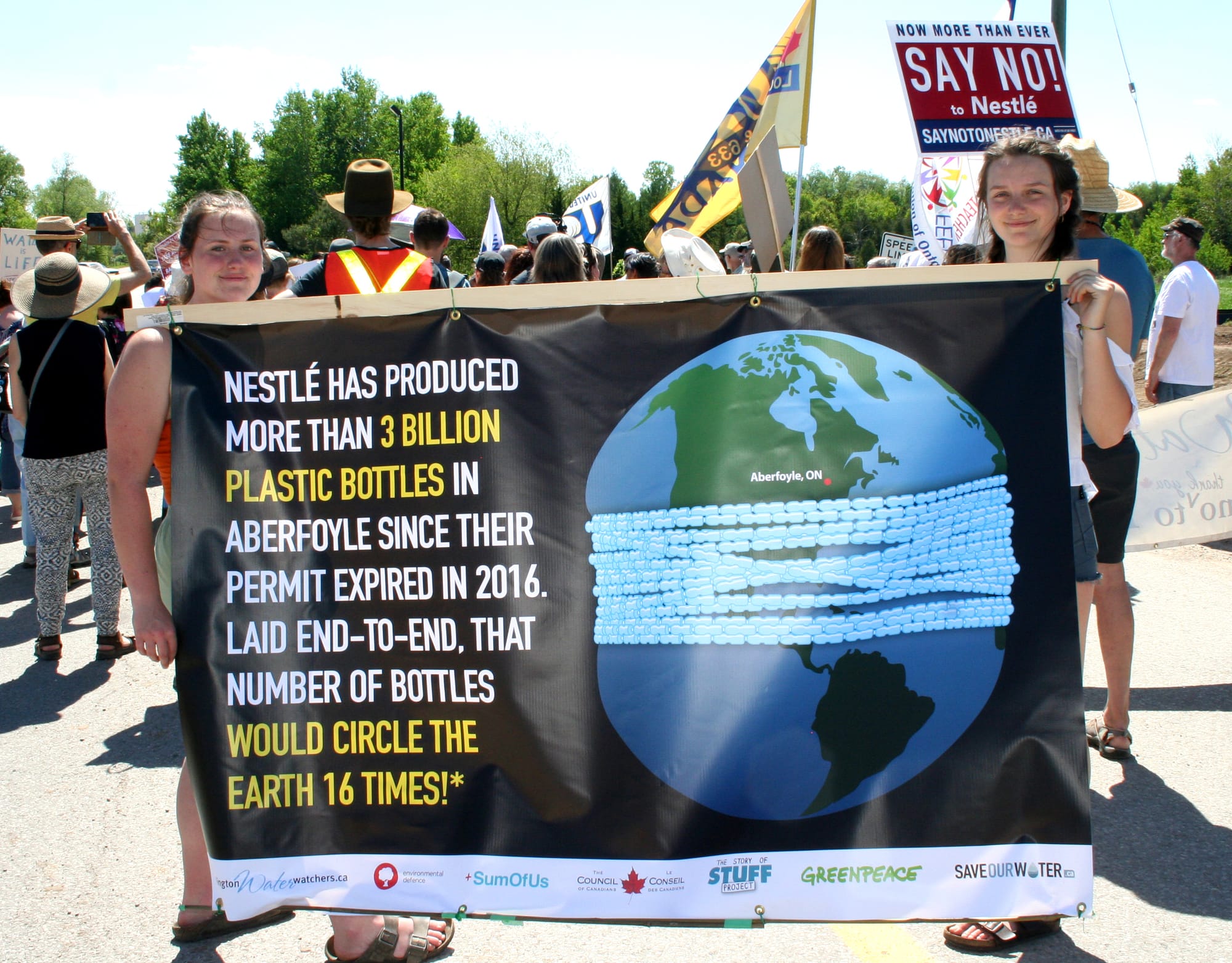 Local labour groups and environmental organizations were on hand in support of the Nestlé protest.