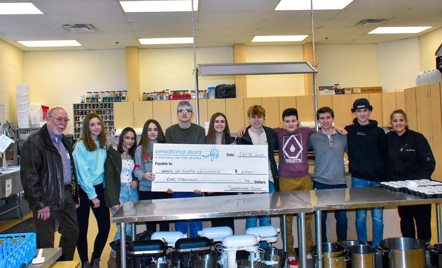 Sensational donations - Sensational Elora presented cheques to the Centre Wellington Food Bank and the breakfast program at Centre Wellington District High School on Dec. 10. The proceeds from the Soup Off, Pumpkin Day, Monster Month and other Sensational Elora events throughout the year go to these two organizations.