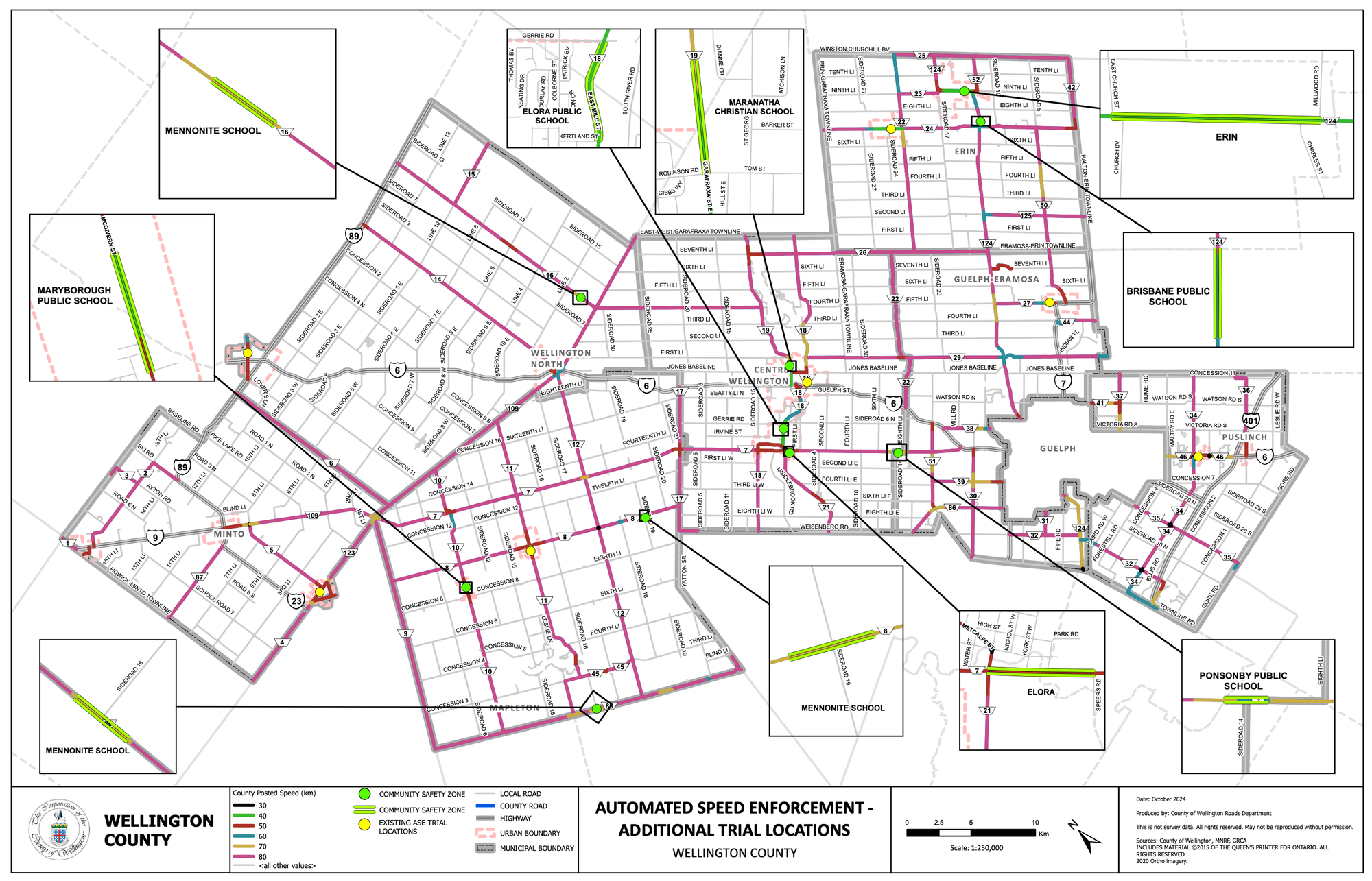 Wellington County has a total of 17 community safety zones and seven of them were approved in October 2024 as the initial ASE trial locations.