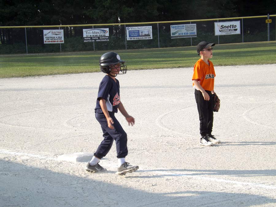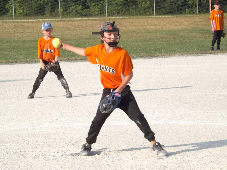 Ball action - The Drayton-Moorefield Giants Atom Orange Squad took on Minto 2 at the ballpark in Moorefield on July 25.