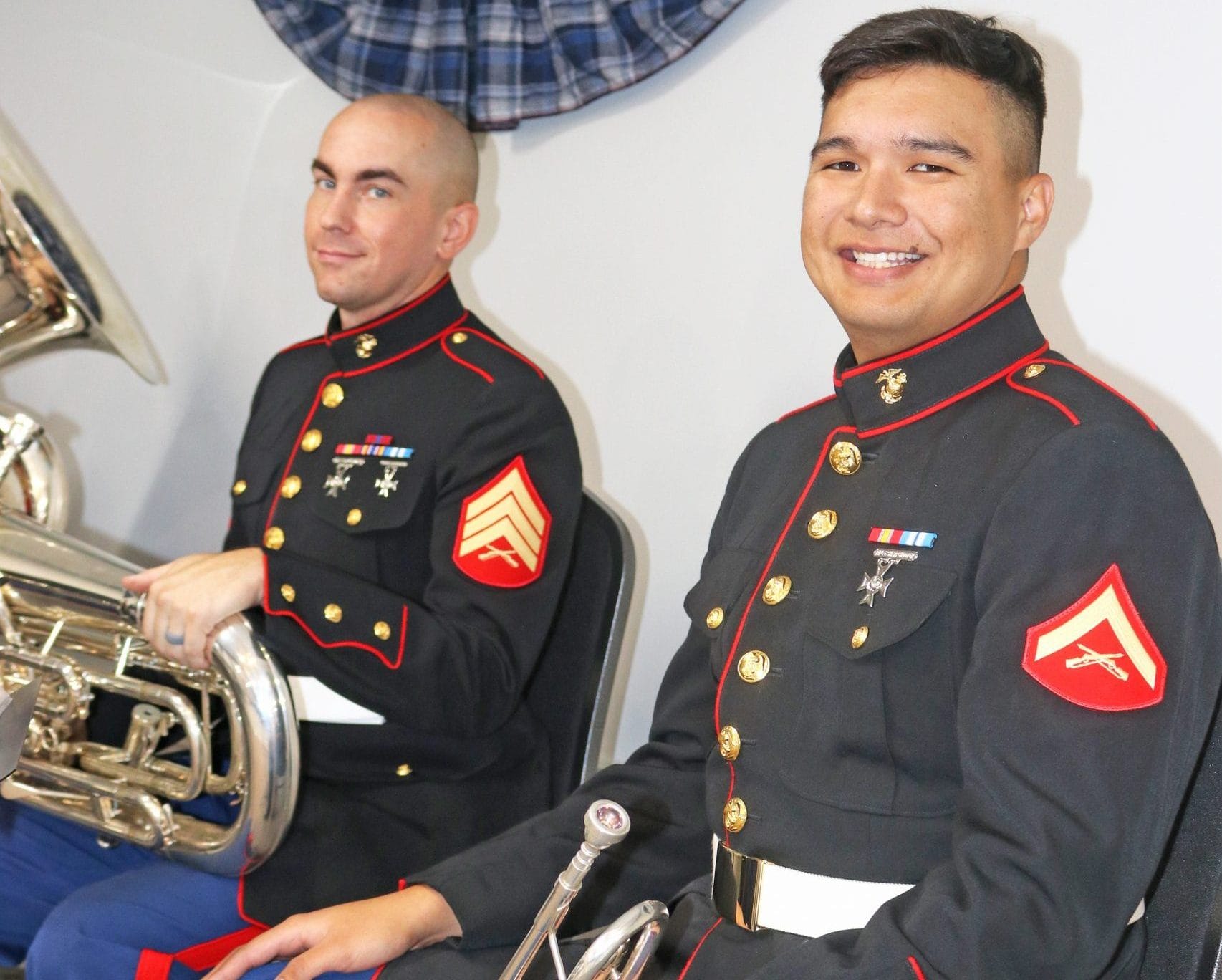 Marine musicians Sgt. John Shirley and Cpl. Emily Pratt sat down with the Advertiser during the luncheon.