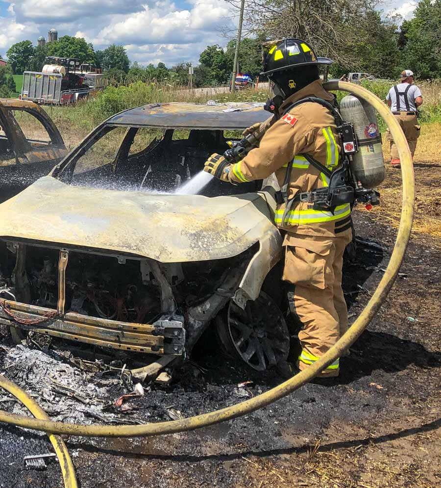 “Upon arrival, both vehicles were fully-engulfed and there was minor extension into the wheat field,” stated Guelph-Eramosa deputy fire chief Jim Petrik in an email.