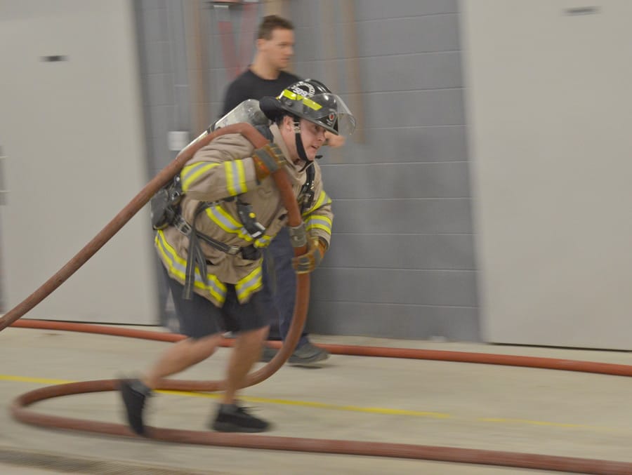 Volunteer firefighter recruits endure physical fitness tests in Hillsburgh