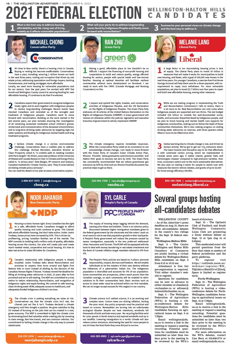 Election 2021 News Wellington-Halton Hills candidates Q&A feature - Part 2 by Wellington Advertiser Updated September 09, 2021 Link copied! Copy failed! *Please click on the image below to access a high-quality PDF.The above Q&A instalment appeared in the Sept. 9 print edition of the Wellington Advertiser. by Wellington Advertiser Updated September 09, 2021 Link copied! Copy failed!