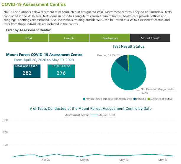 The latest data from the Mount Forest assessment centre (as of May 22) is included below.