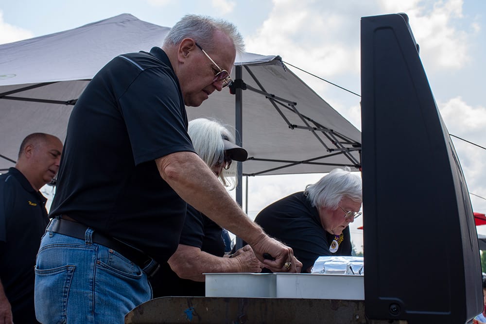 Garry Woodcock, referred to as “Woody” by fellow Lions, was working the grill all day.
